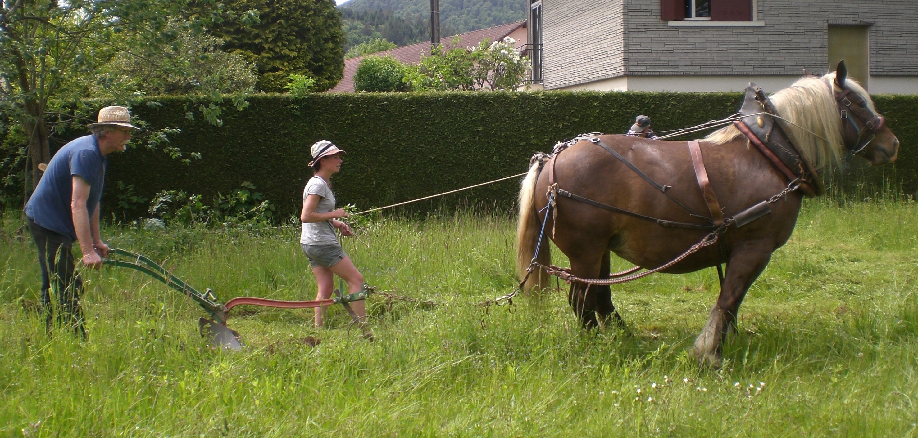 Les travaux ont débuté d’une manière très écologique : Michel, Jeannette et la jument TOUNE ont passé la charrue.