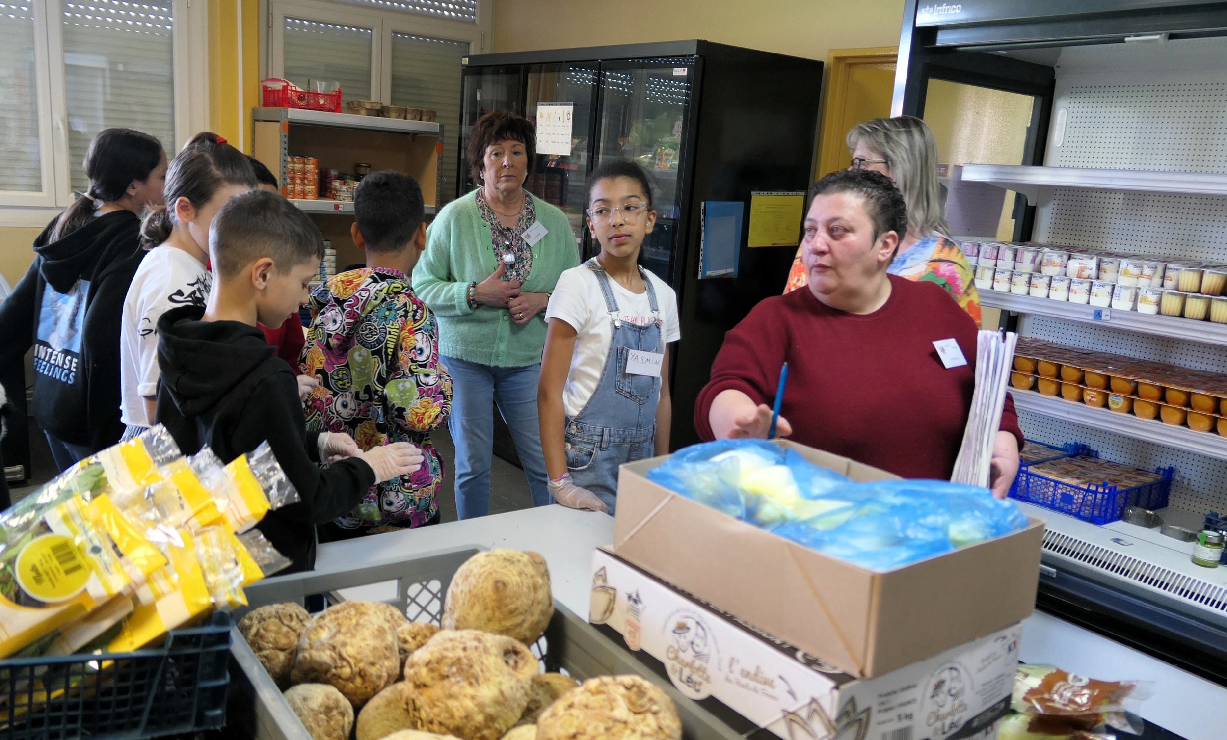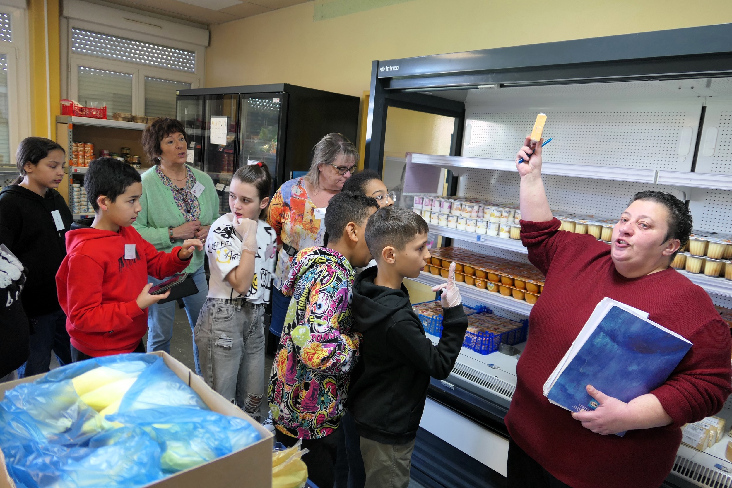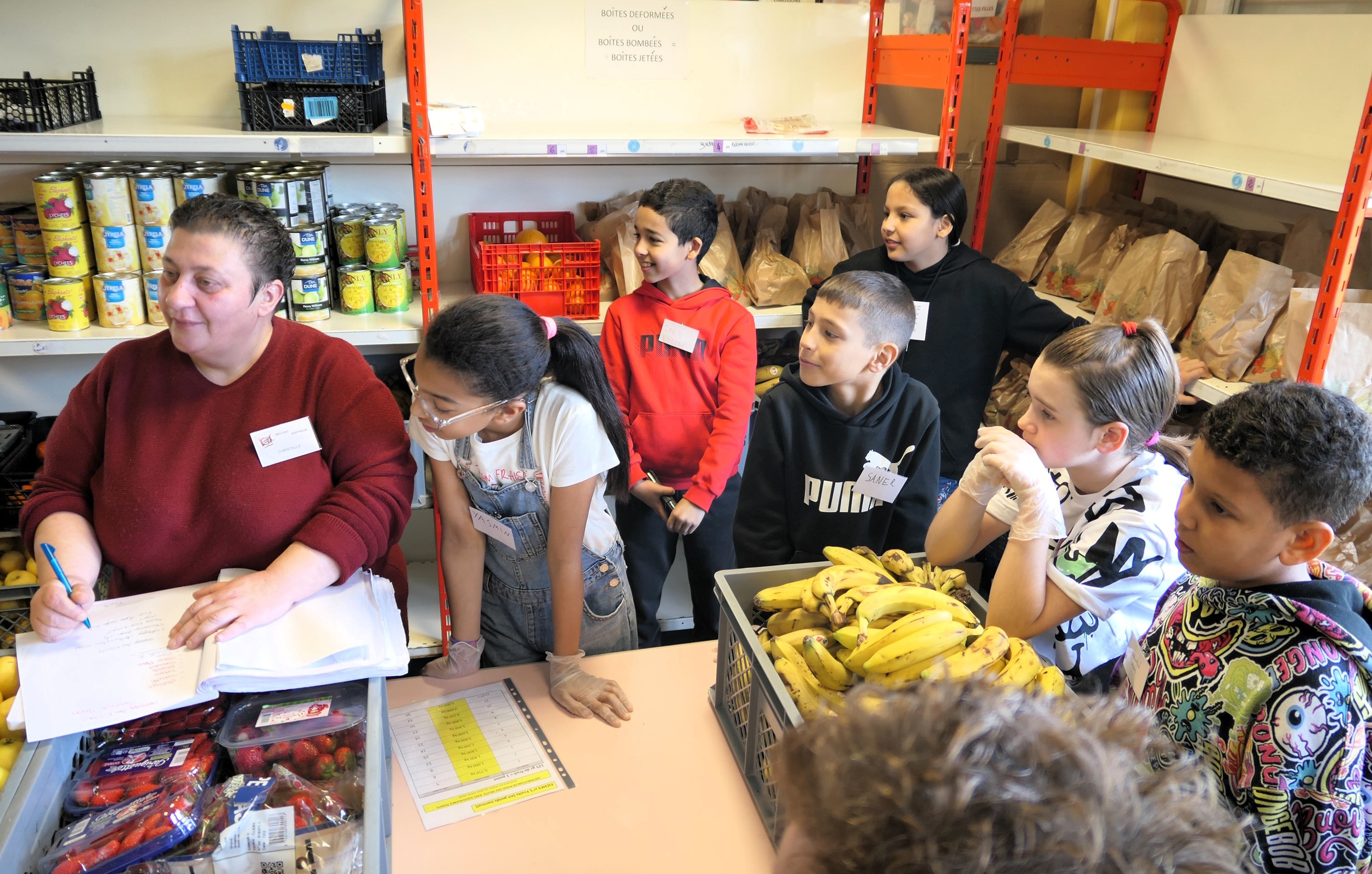 « La solidarité et l’entraide représentent des thèmes qui les touchent et auxquels ils tiennent à participer » témoigne Myriam Loulida Brun en charge de l’animation au service Vie scolaire de la Ville de Belfort. Le groupe d’élus juniors doit mener deux actions durant son mandat qui correspond à l’année scolaire. En plus de l’opération de ce jour ces jeunes de 10 ans, en classe de CM2, organisent concomitamment une collecte de croquettes pour les animaux de la fourrière. Le groupe incarne la mixité sociale, géographique et culturelle de la cité. Le conseil municipal des enfants avait l’an dernier apporté le fruit d’une collecte. « J’ai trouvé opportun pour donner du sens de les faire participer sur le terrain » explique Catherine Viron. « On sent leur enthousiasme, ils viendraient chaque semaine, deux d’entre eux ont déjà annoncé que plus tard ils seraient bénévoles » ajoute Corinne Castaldi. Les bénévoles présents en ce samedi matin sont heureux de les accueillir et de les informer dans une logique de transmission des savoirs et des expériences. Les enfants ont découvert le fonctionnement de la distribution accompagnée avec son système de points garant d’équité.
